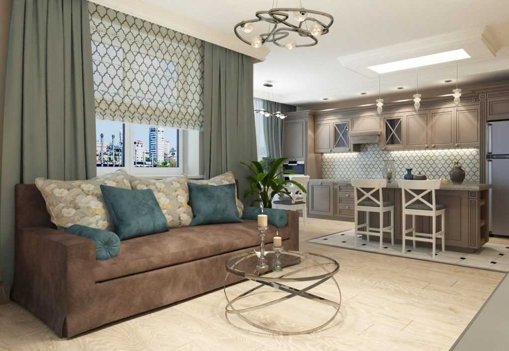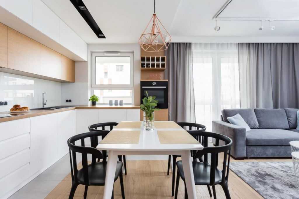 Мебель и цвета напрямую зависят от выбранного стиля в интерьере совмещенной кухни и гостиной. В 2022 г. остаются на пике: