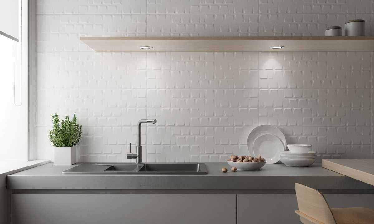 Тренд 2022 г. — отделка кухонного фартука несколькими натуральными материалами. Используются необычные сочетания цветов и фактур. Особо интересными становятся панели из полиуретана, зеркальная, а также рельефная, глазурованная и этническая плитка.