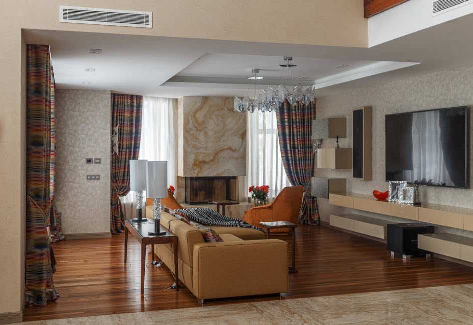 Можно сколько угодно восхищаться удачным решением дизайнера по фото большой гостиной. Но без правильно подобранной системы освещения добиться этого было бы сложно.