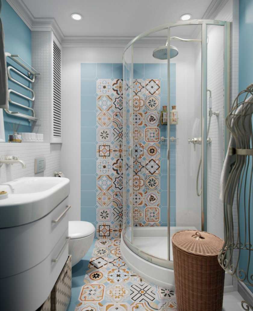 Оптимальным решением для дизайна маленькой ванной с плиткой является использование элементов пастельной гаммы (нежно-салатового, припыленного розового, голубого). Палитра плит может быть холодной либо теплой. Пастельные цвета помогают визуально расширить комнату, создают ощущение простора. Нежная гамма популярна в стилях кантри, минимализм, винтаж, прованс.
