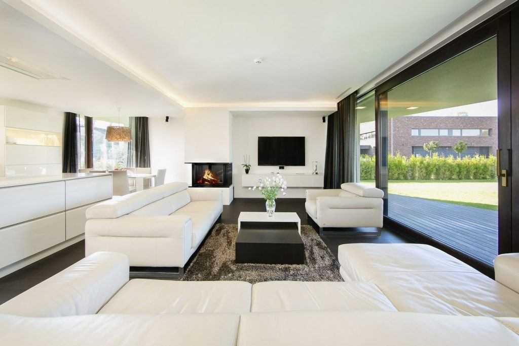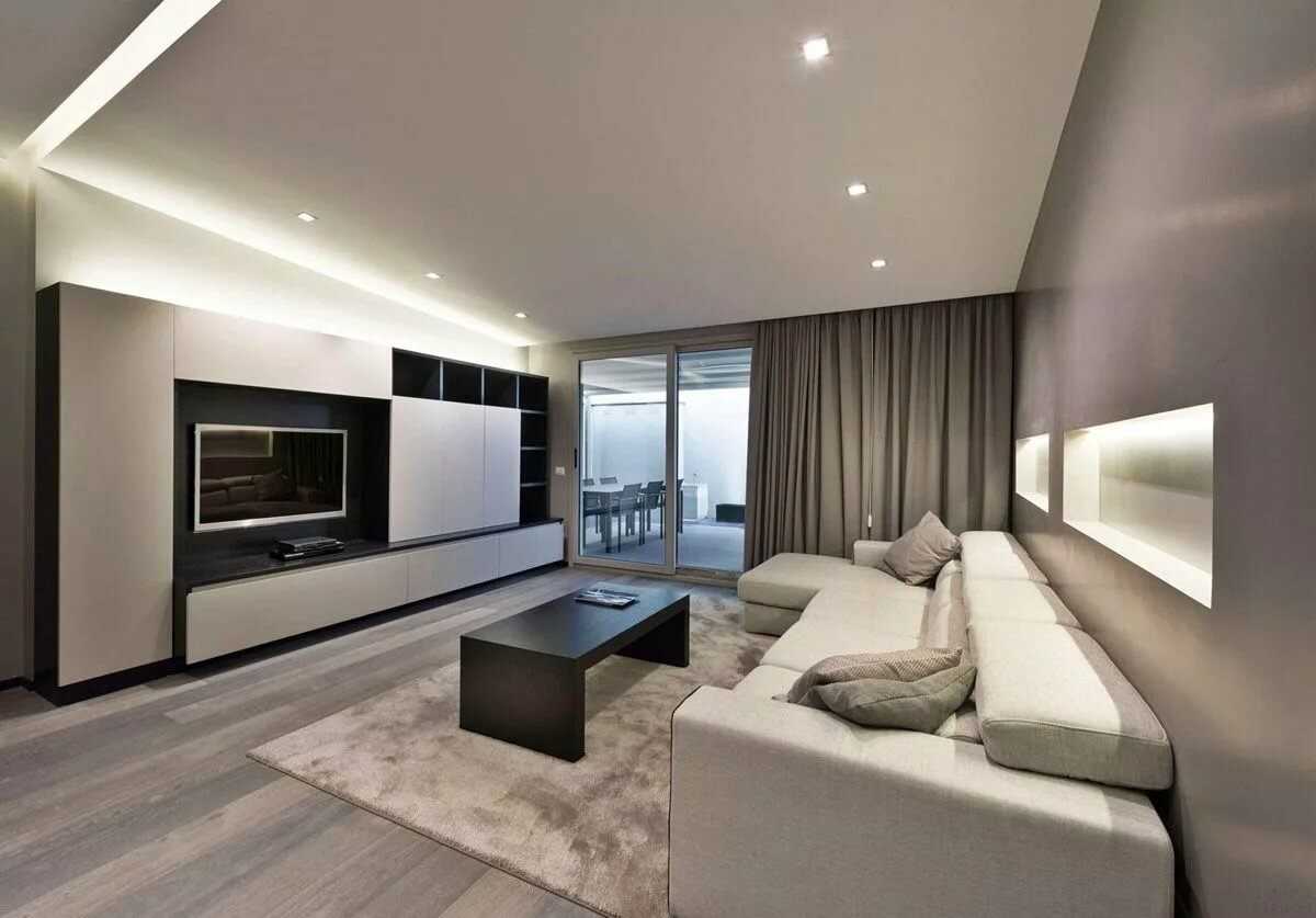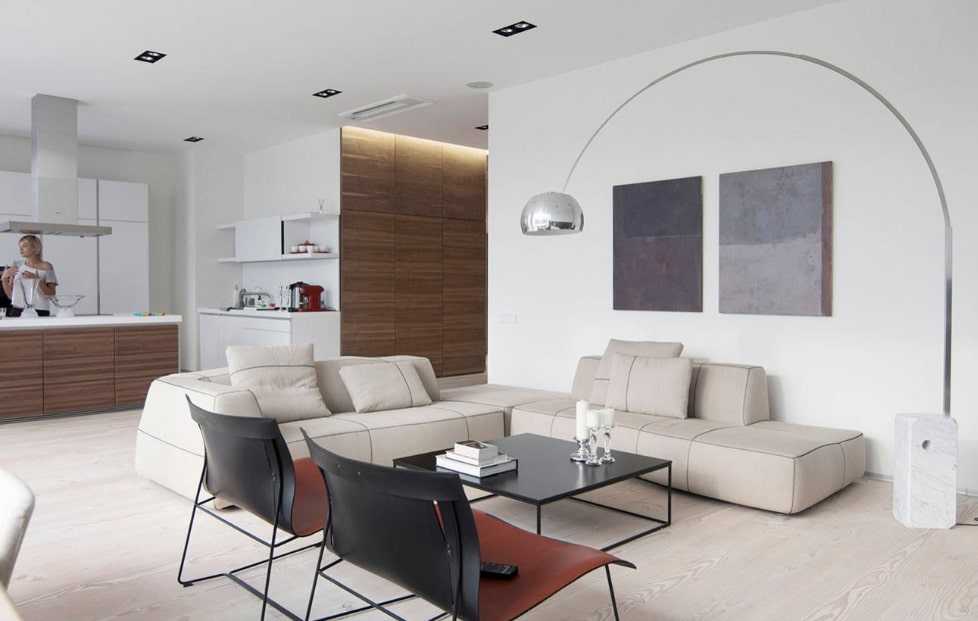 Гостиная в стиле минимализм всегда светлая и открытая. Много светлых тонов и пространства, в помещении практически нет декора и ненужных, загромождающих пространство вещей.