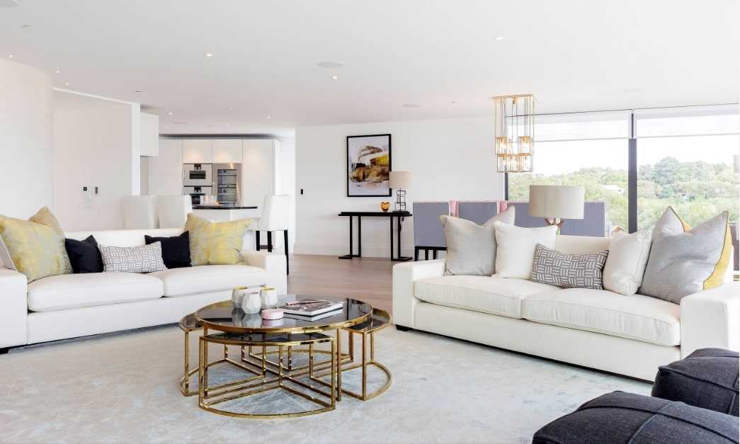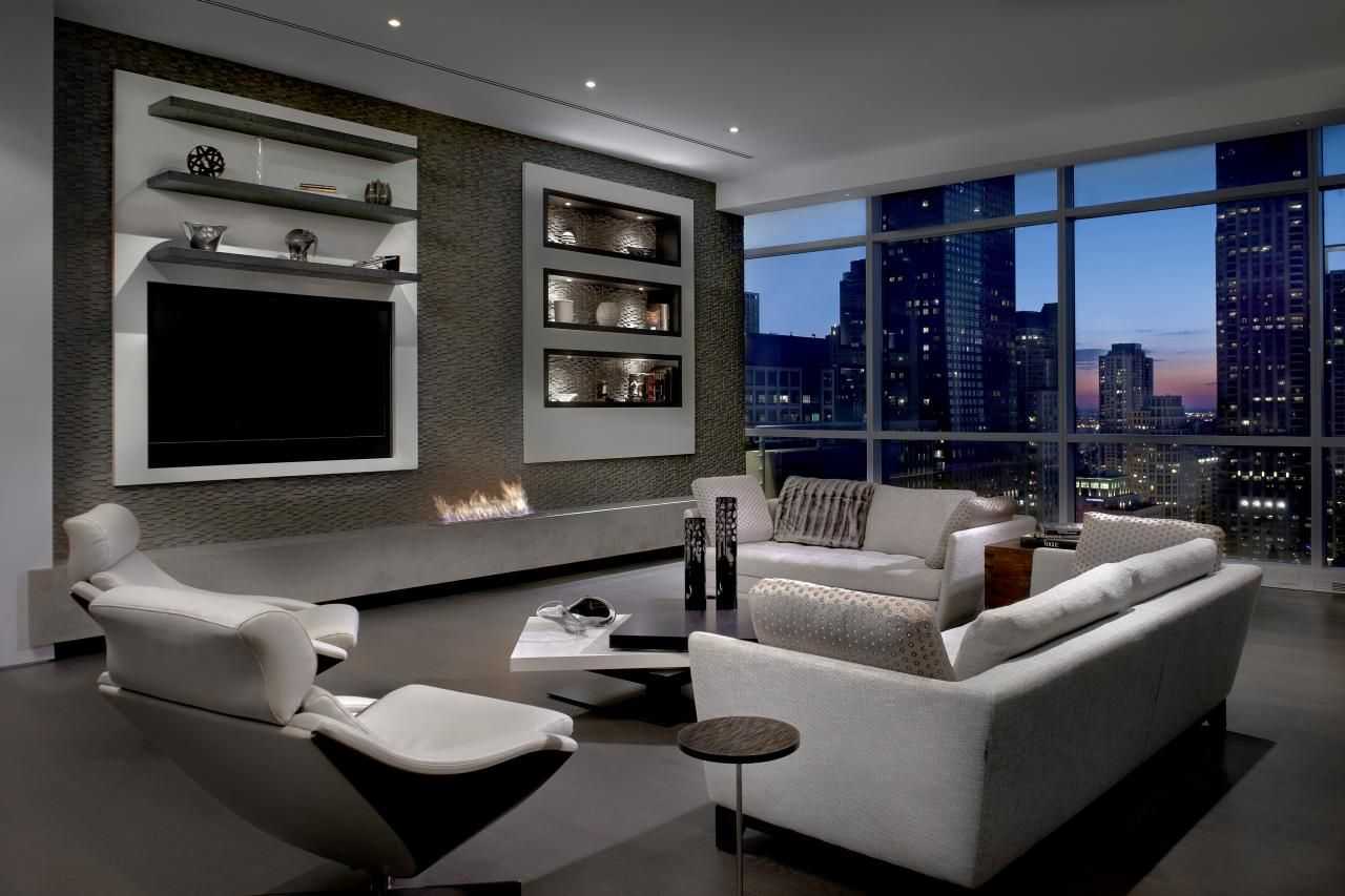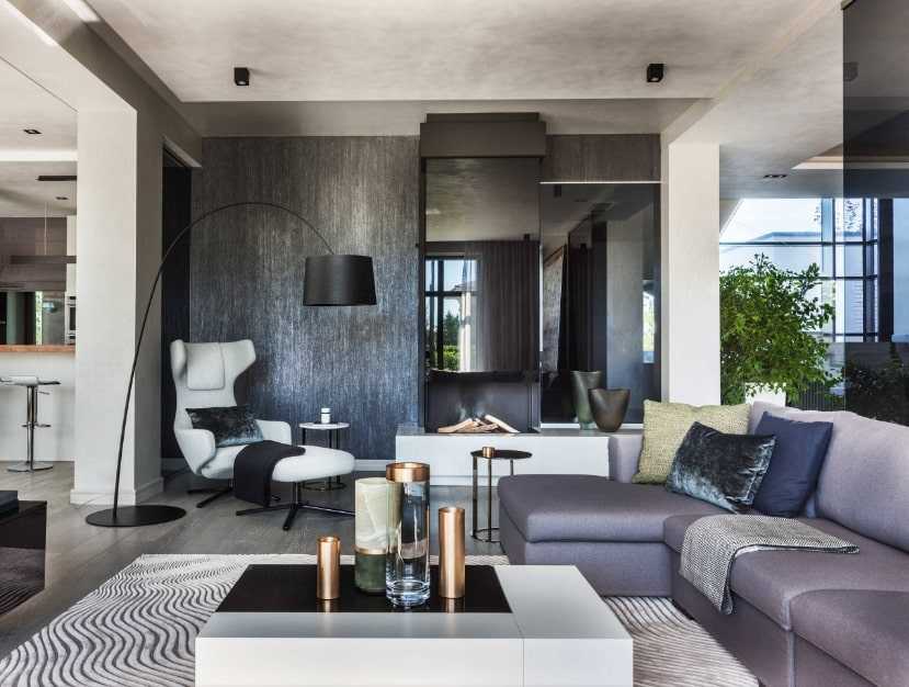 Современный дизайн гостиной использует металлические конструкции из золота, серебра и бронзы в элементах мебели или декорациях, которые придадут особую атмосферу и изюминку.