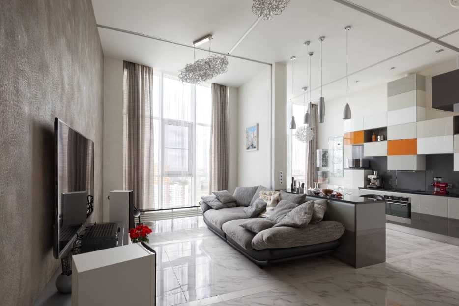 Встречаются и такие варианты, когда гостиная совмещается с кухней