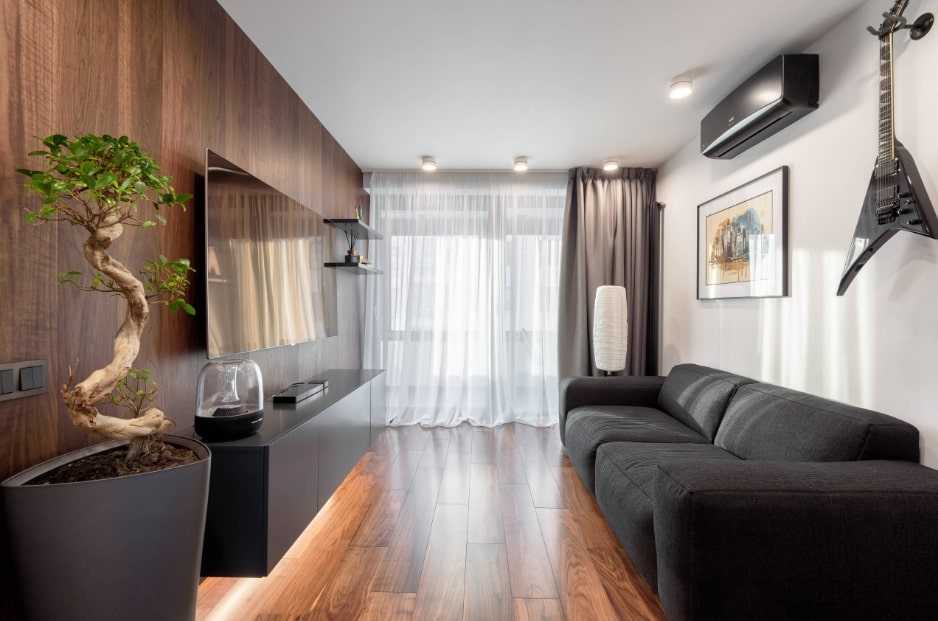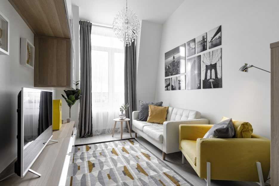 Небольшие гостиные приходится обустраивать аскетично с точки зрения количества элементов. Как правило, воплощается какая-нибудь одна функциональная зона.