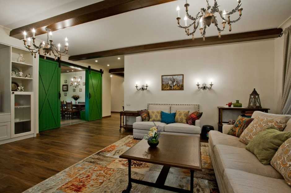 В провансе есть все: особый шик, свет, уют и тепло. В такой комнате будет особенно уютно пить чай вечерами с гостями или в кругу семьи. Откровенный уют настроит на душевность и теплоту. Используют только приглушенные, светлые тона. Текстиль с цветами, пышные шторы и множество картин на стенах.