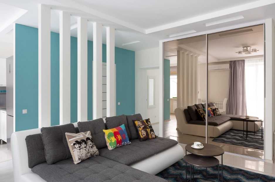 Чтобы сделать комнату визуально больше, добавляют различные зеркальные поверхности.