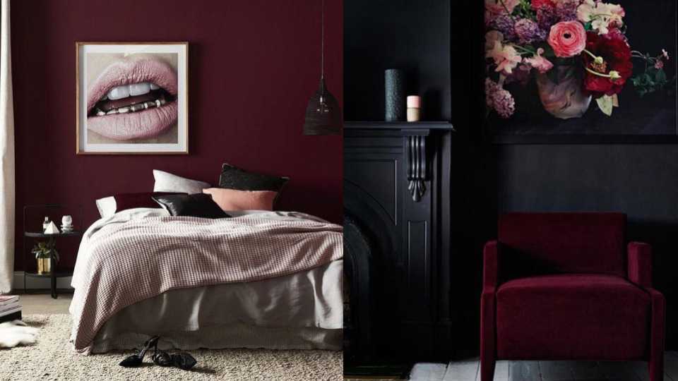 Когда желание велико, можно использовать пятна в цвете бордо, тогда интерьер не будет казаться мрачным, и комбинирование различных цветов будет выглядеть более ярко и необычно.