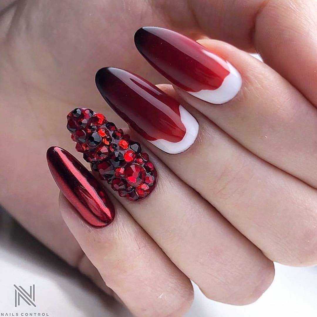 Выполнение маникюра в виде градиента выглядит шикарно и эффектно в любом цветовом решении. Одной из самых популярных и утонченных идей является растяжка нескольких тонов бордового цвета. Также можно применять и другие контрастные цвета. Очень красиво сочетается винный оттенок с классическим черным цветом. Также не менее красивыми получаются плавные переходы между бордовым и серым, красным, розовым, рубиновым и белым цветом. Неординарным сочетанием станет комбинирование бордового цвета с оттенком божоле, шоколад или любым из тонов фиолетовой палитры. При этом растяжку цветов можно с легкостью украсить небольшими рисунками такого же цвета либо применить акриловую пудру.
