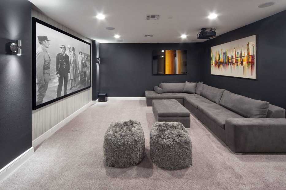 - Потолок лучше оформить светлее/темнее стен, мебель черного цвета не должна раствориться на общем фоне.