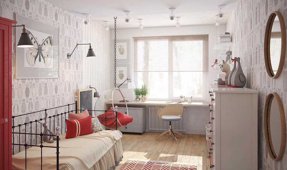 Как и в спальне, в детской можно продлить подоконник по всей стене. Во-первых, так появится большой письменный стол, который вместит несколько детей. Во-вторых, если комната принадлежит одному ребёнку, он сможет использовать это место как пространство для игр и отдыха.