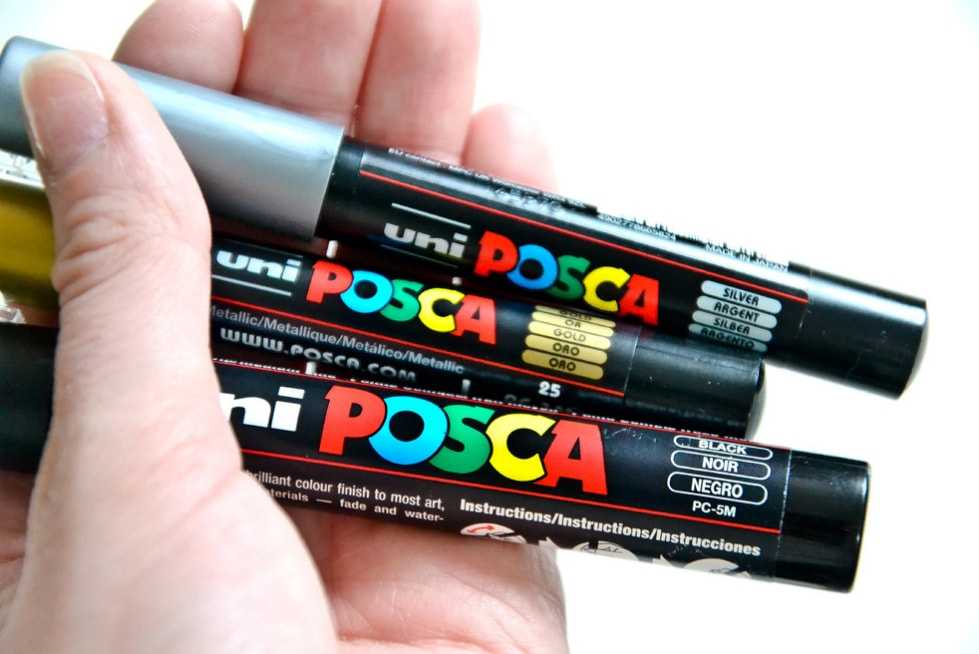 Для начала определимся с толщиной стержня фломастера и оттенком. В данном случае используем толстый черный фломастер, а также серебристый и черный с тонким стержнем.