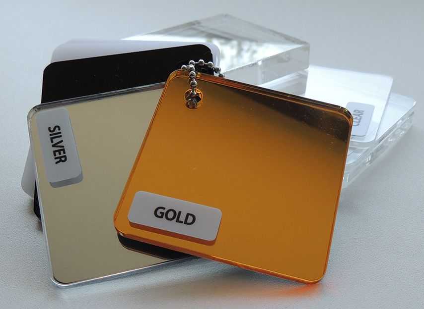 Акриловые зеркала выпускаются в широкой цветовой гамме. Можно выбрать любой понравившийся оттенок или несколько, чтобы сделать зеркальное панно. Панели из пластика не бьются, легко обрабатываются и крепятся к двери, обладают незначительным весом. Стоимость зеркального оргстекла не самая низкая, но качество и эстетические качества полностью соответствуют заявленным ценам.