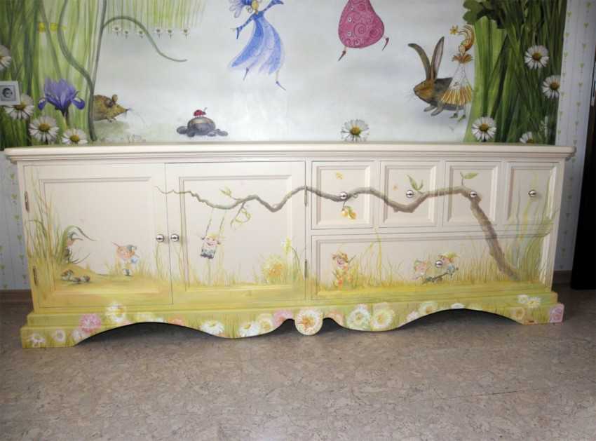 Если у вас имеется склонность к живописи, то обязательно примените эти навыки – дополните аппликации росписью акриловыми красками. Даже самый тусклый и невзрачный шкаф сможет стать изюминкой интерьера.