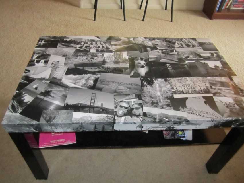 Нанесите клей и разместите в необходимых местах вырезанные изображения. Когда клей по всей площади полностью высохнет, снова покройте всю композицию прозрачным акриловым лаком. Если в качестве материала была выбрана салфетка, то используйте только её верхний слой. Опять же, чтобы она не потеряла контрастность, поверхность основания лучше сделать светлой.