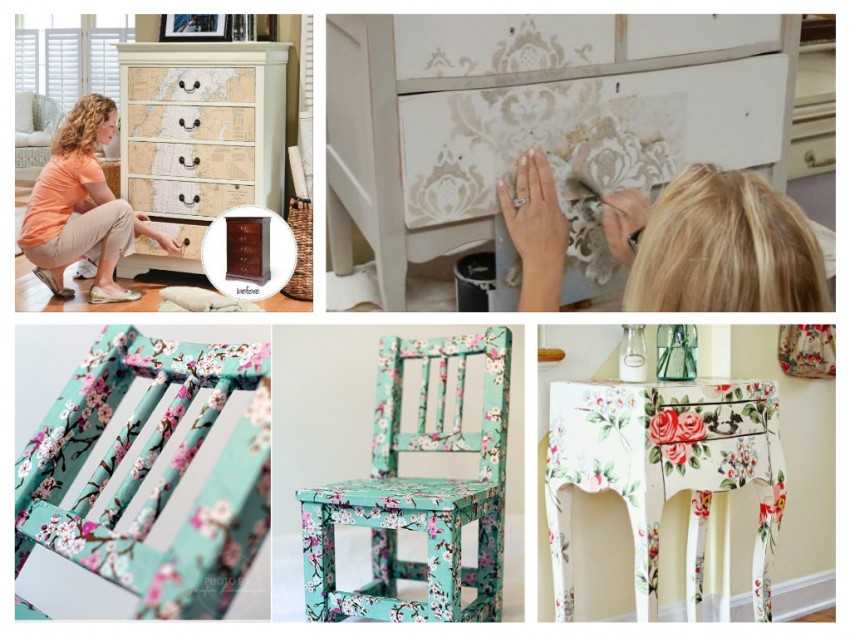 Благодаря простым и незатейливым идеям вы можете преобразить ваш шкаф, сервант или шкафчики для кухни, ванной до неузнаваемости всего в несколько шагов. Используйте остатки обоев – наклейте их на боковые стороны или дверцы и наслаждайтесь свежим и ярким образом. Существует и другой способ украшения обоями. Его отличие состоит лишь в том, что оклеить необходимо плоскости внутри изделия. Такой декор расширит внутреннее пространство и будет радовать своим видом при каждом открытии дверок.
