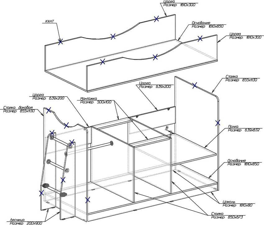 Изготовление конструкции от 3 лет с бортиками: детская кровать-чердак