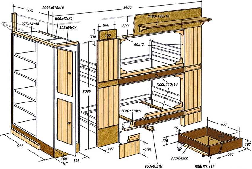 Сегодня детские кровати представлены в широком видовом многообразии. Они отличаются типом конструкции, габаритами, количеством составных элементов, наличием дополнительных мебельных приспособлений и материалом изготовления. Однако не любую модель можно выполнить в домашних условиях.