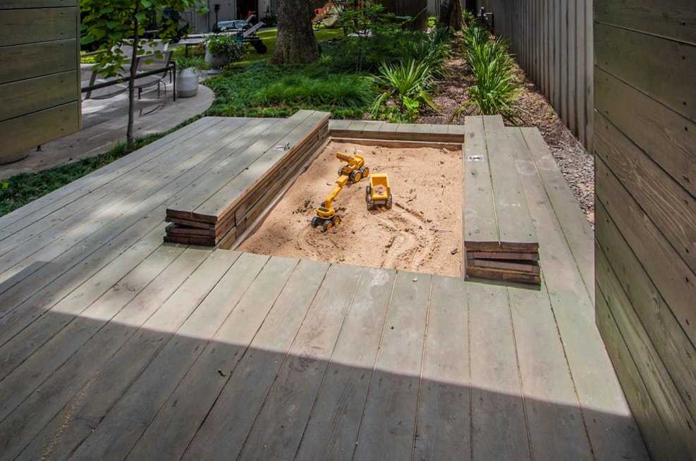 Что касается материалов, то лучше всего делать такую конструкцию из дерева, но тщательно обработанного, а также из пластика. Постарайтесь сделать крышку для такой песочницы, чтобы закрывать ее в то время, когда дети не играют.