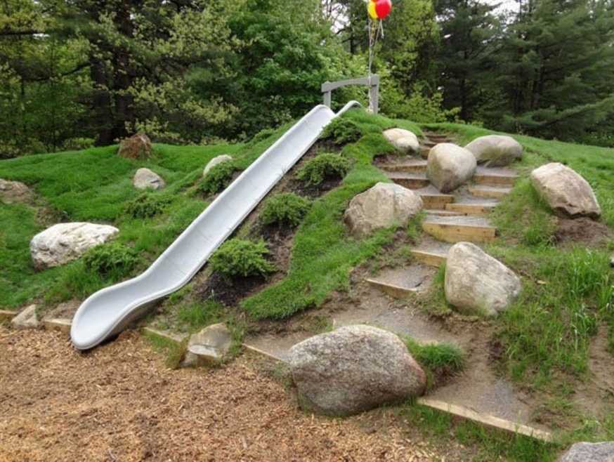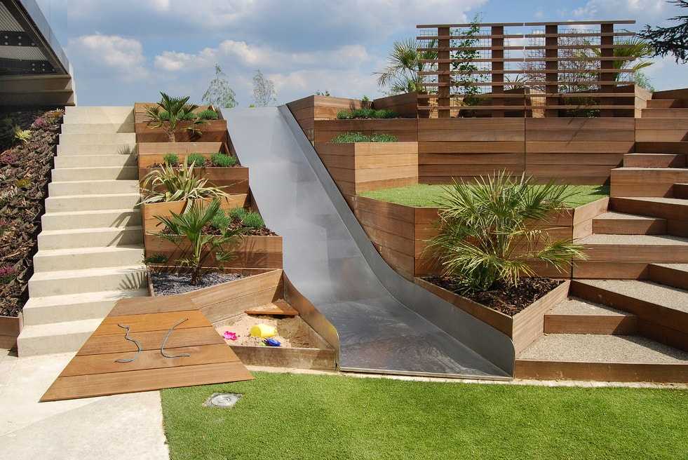 Не меньшей популярностью у детворы пользуются горки. Они бывают прямыми и в виде спирали. Но из чего сделать это удовольствие? Есть несколько вариантов: