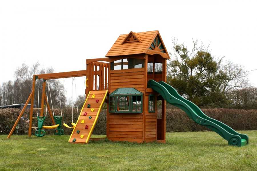 Домик для детской площадки это не просто деревянные куб с крышей. Это может быть целый комплекс разных сооружений с качелями и другими снарядами.