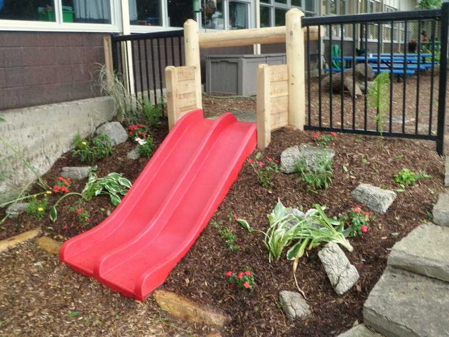 Горки – это элемент, от которого захватывает дух каждого ребёнка. А если в дополнении обустроить ещё упрощённые лабиринты, то малыши забудут о существовании взрослых.