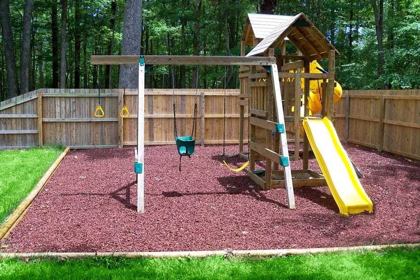 Слой резиновой крошки толщиной всего два или три сантиметра способен эффективно смягчать удары без каких-либо последствий для недостаточно крепкого организма ребенка. Самые опасные участки можно покрывать более толстым слоем резиновой крошки (до 10 см).