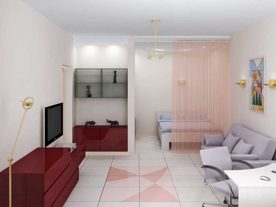 Такие помещения могут быть с частичным визуальным разделением между различными функциональными зонами. Такие решения подходят для небольших квартир. Например, для двухкомнатной квартиры 45 кв м такой дизайн будет лучшим решением.