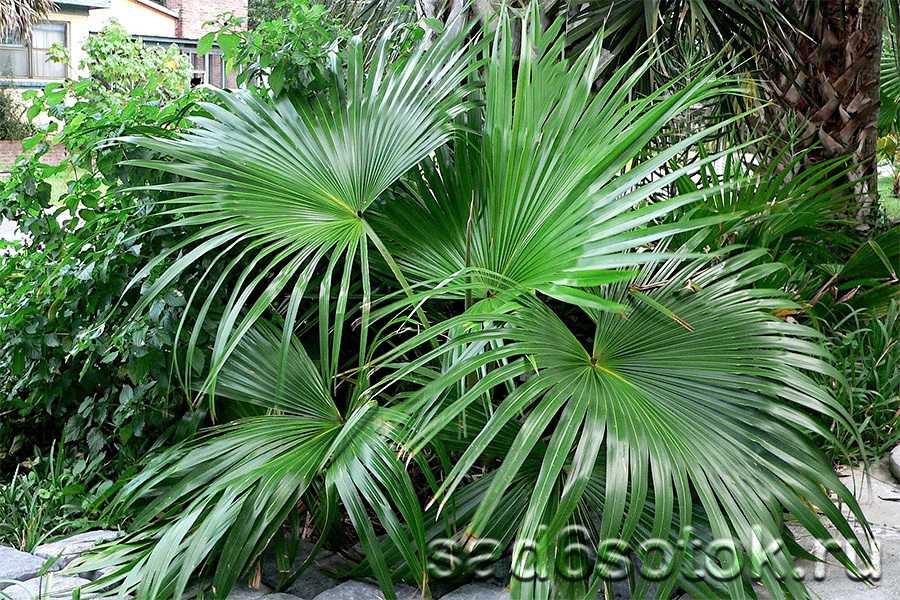 Медленнорастущая пальма. Отличается большими листьями с поникающими кончиками.