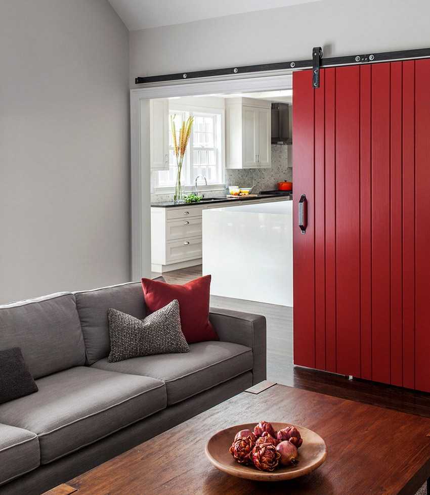 Вы можете выбрать цвет двери классическим способом, то есть по цвету стен, пола и мебели или по контрасту. Сочетание белого пола и черной двери выглядит очень интересно в современных интерьерах. Сторонники лофтов и сырой промышленной эстетики могут испытать соблазн установить двери цвета сырого бетона. Простые белые деревянные двери будут отлично смотреться в провансе и скандинавском интерьере, а после добавления легких ссадин они станут потертым и шикарным украшением интерьера.