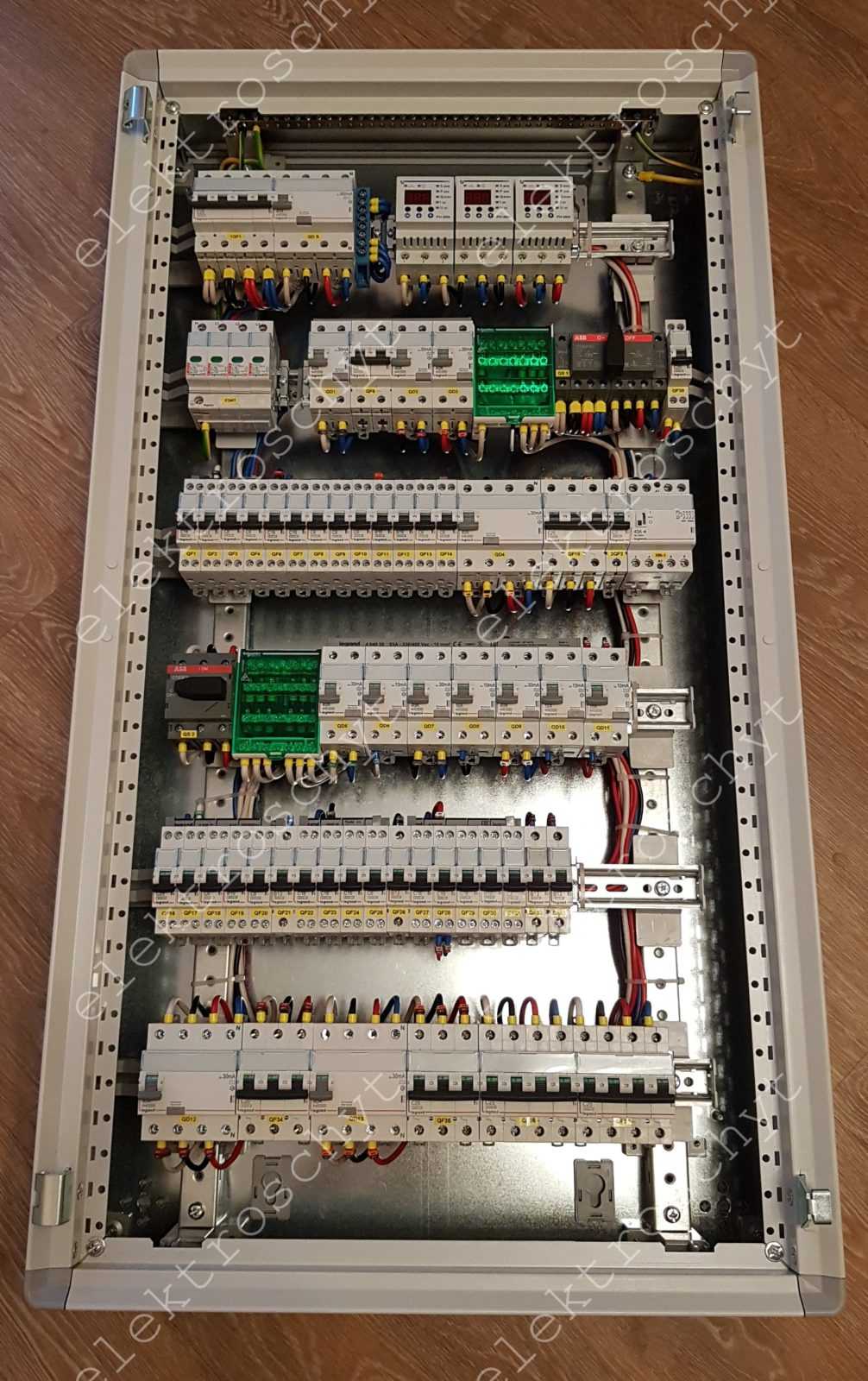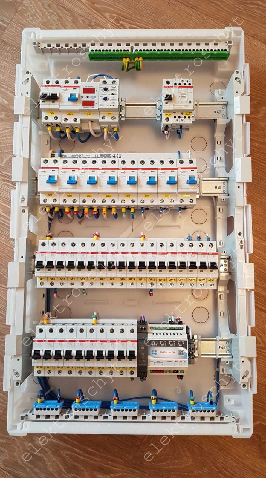 Все элементы есть на схеме, чтобы выбрать щиток, нужно пересчитать модули и приобрести изделие соответствующего размера. Профессиональные электрики советуют приобретать бокс с запасом.