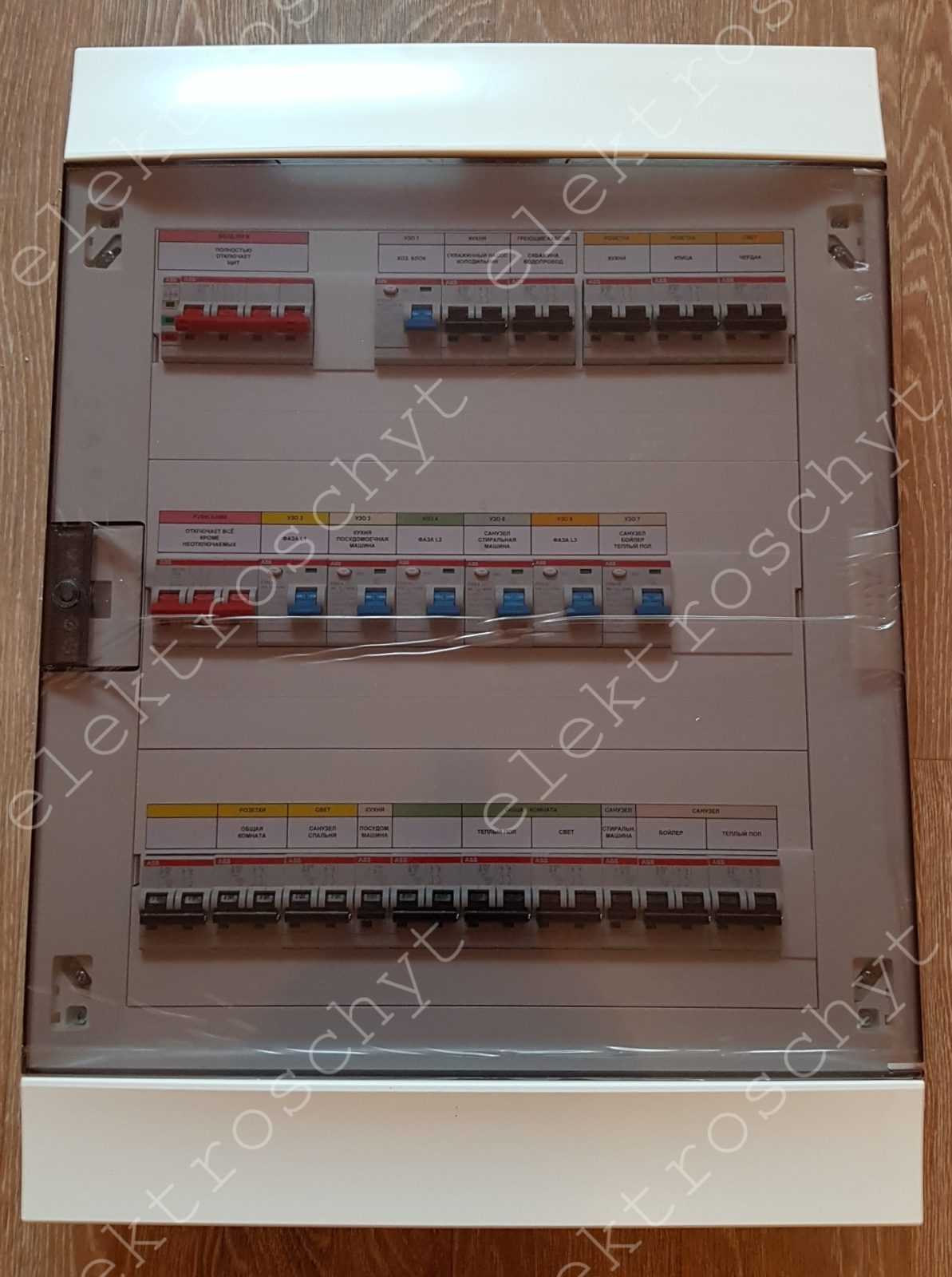 Поэтому собственники стараются при заселении в квартиру изменить его местоположение, чтобы он был эстетичен. При этом не занимал полезной площади и отвечал всем требованиям безопасности. Можно оставить его на прежнем месте, заменив устройства защиты и проверив качество подводки электропроводов. Придется установить новые автоматы, номиналы которых соответствуют мощности оборудования собственника. Например, как показано на нижеприведенном рисунке.