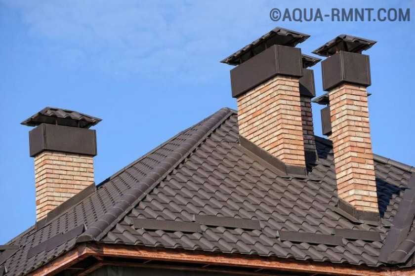 Крыши, изготовленные из профлиста, оснащают трубами в следующих участках: