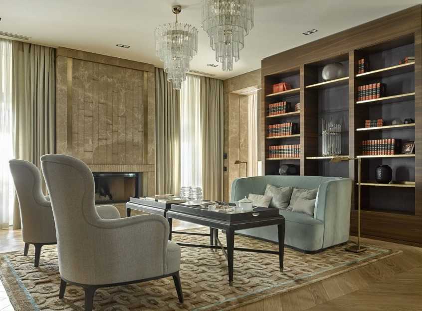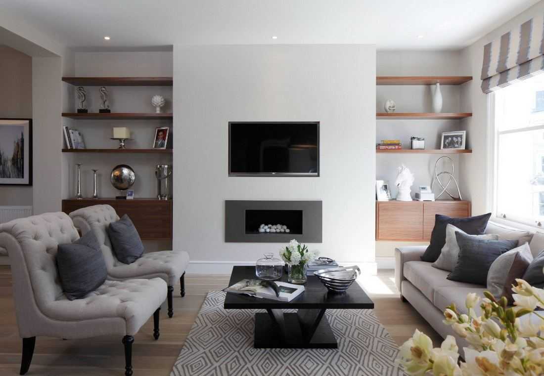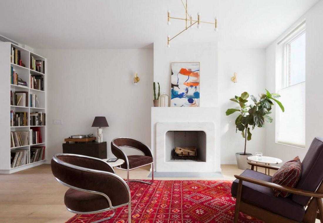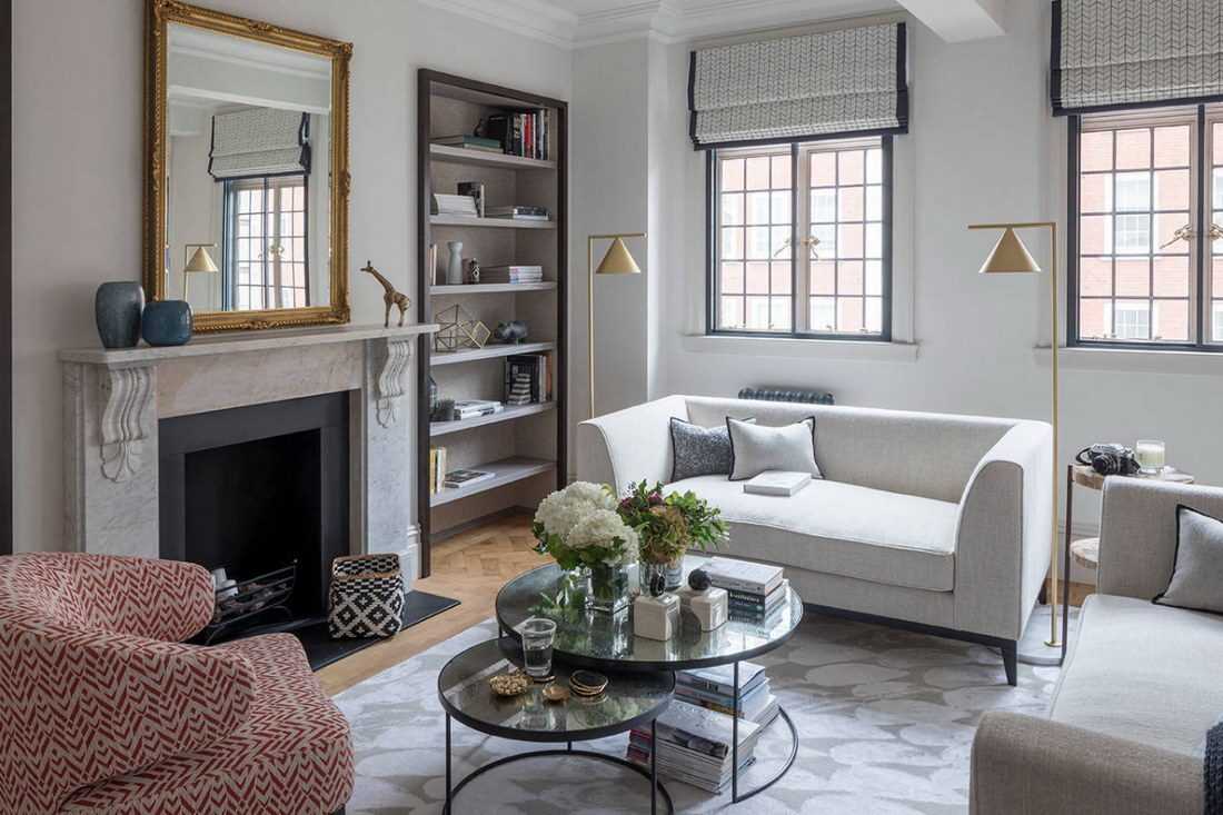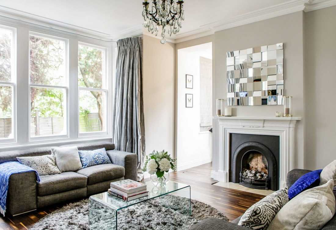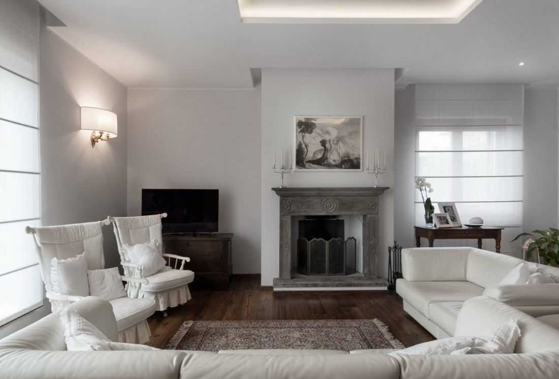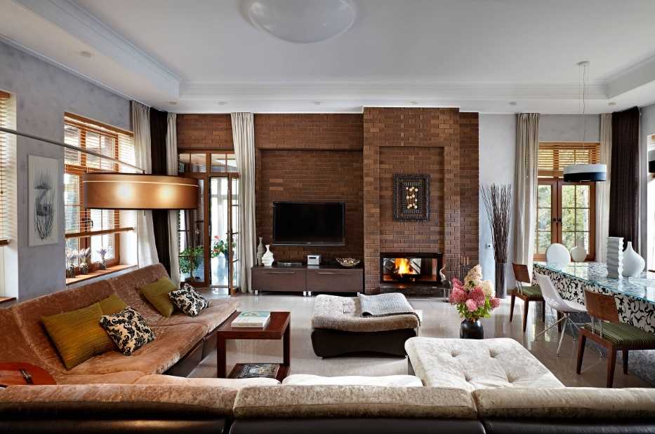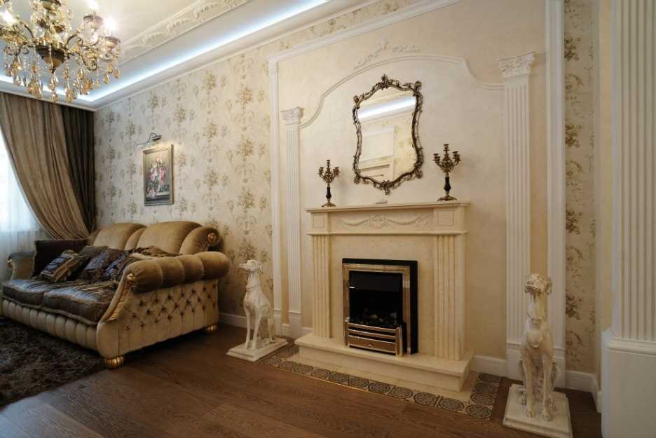Интерьер гостиной с камином в квартире