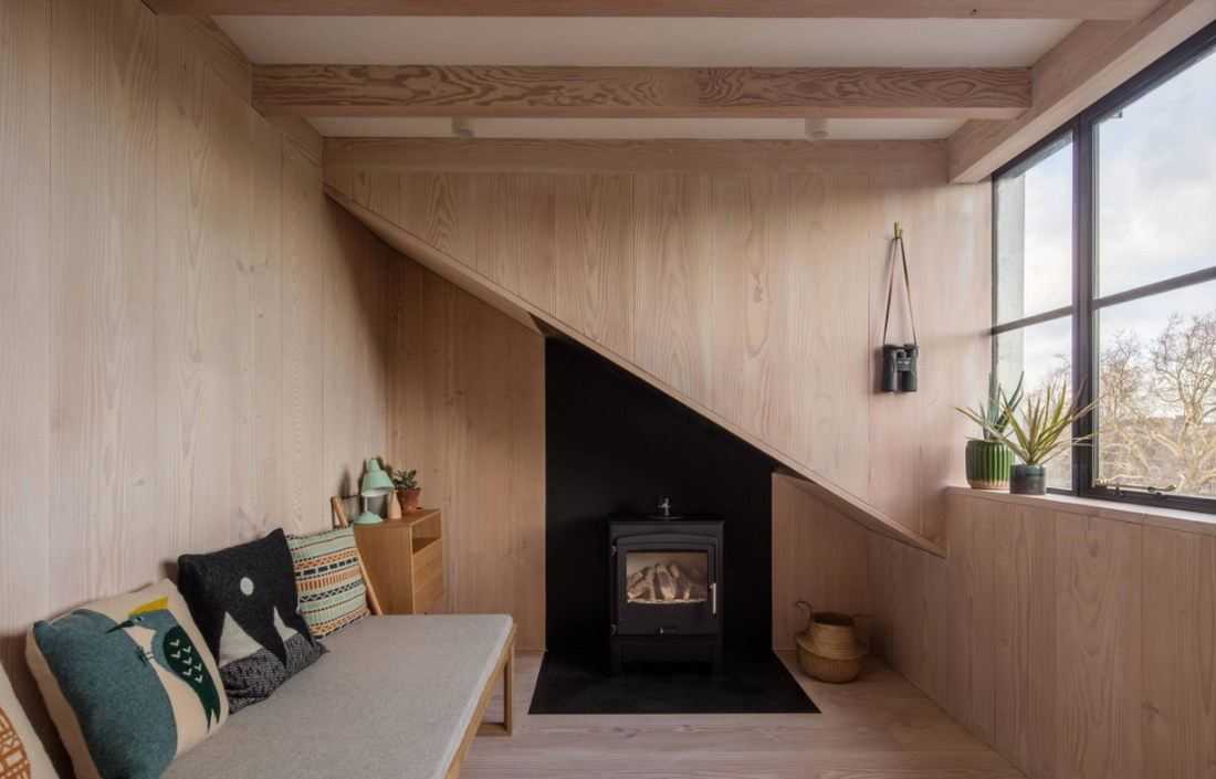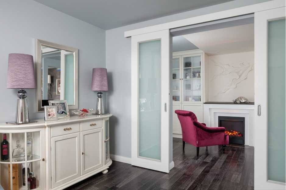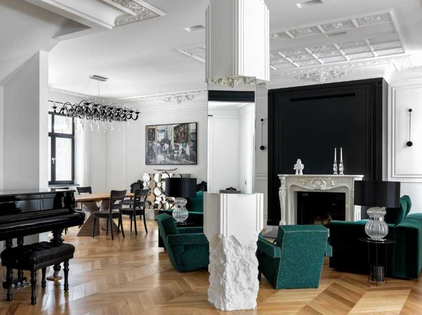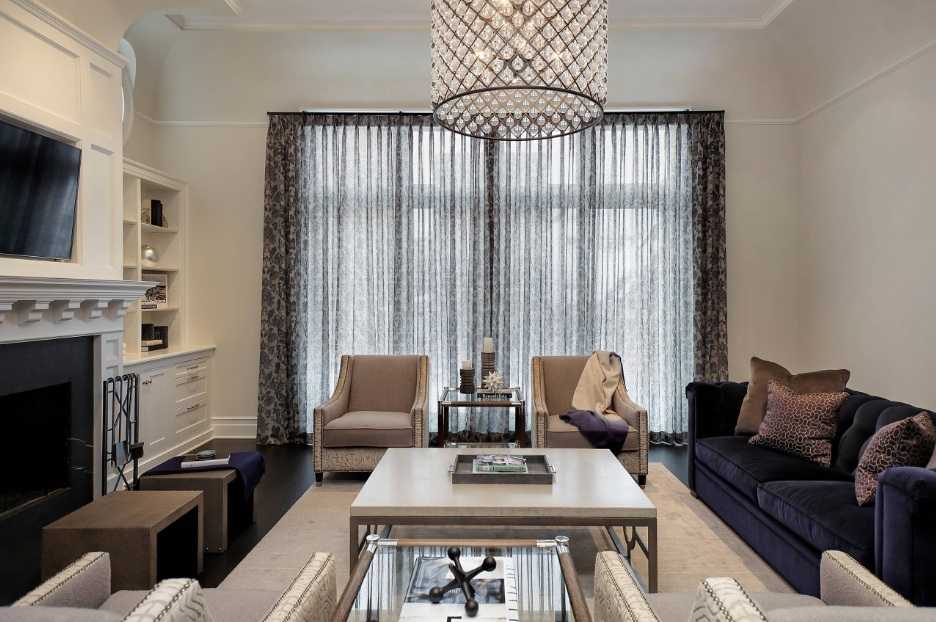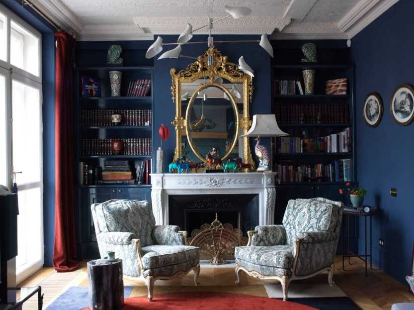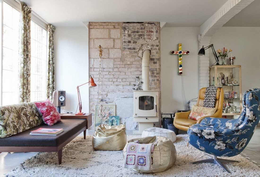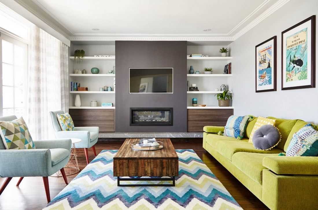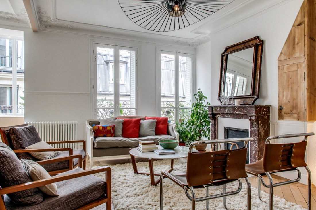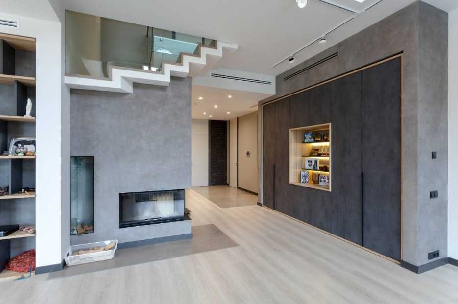 Интерьер гостиной с камином в квартире