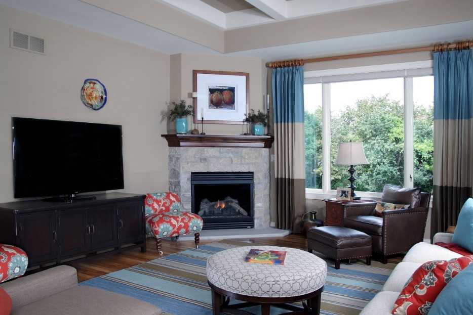 Гостиная с камином и телевизором