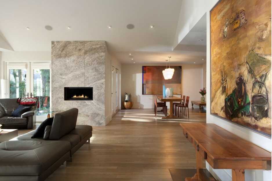 Несомненно, частный дом идеально подходит для установки любого вида камина. Особенно в том случае, если габариты комнаты большие. Для этого нередко объединяют гостиную с кухней в единое просторное помещение. Преимущественно в нем устанавливают классическую конструкцию еще на этапе строительства. Это позволяет учесть все нюансы и требования по части безопасности