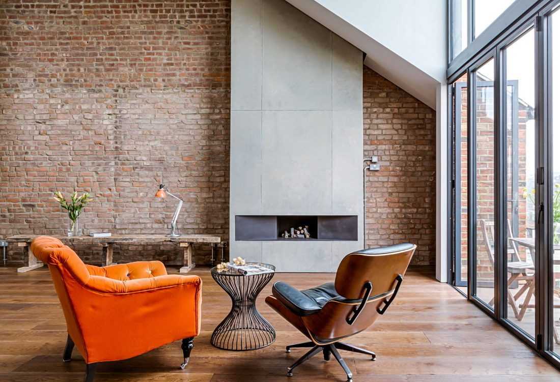 Особенно актуальным в современном мире стал стиль лофт. Кирпичную отделку все чаще можно увидеть даже в небольшой квартире. Сочетание такого интерьера с камином выглядит свежо и интересно. Причем он вовсе не обязательно должен быть классическим. Ведь в данном случае уместной будет комбинация старины с современной техникой. Альтернативным решением может быть фальш-камин.