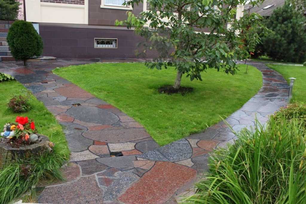 - Гранитная брусчатка – практически вечный материал. Садовая дорожка из брусчатки (небольшого булыжника) будет служить даже правнукам, а ее укладка сравнима по простоте с игрой в детские кубики.