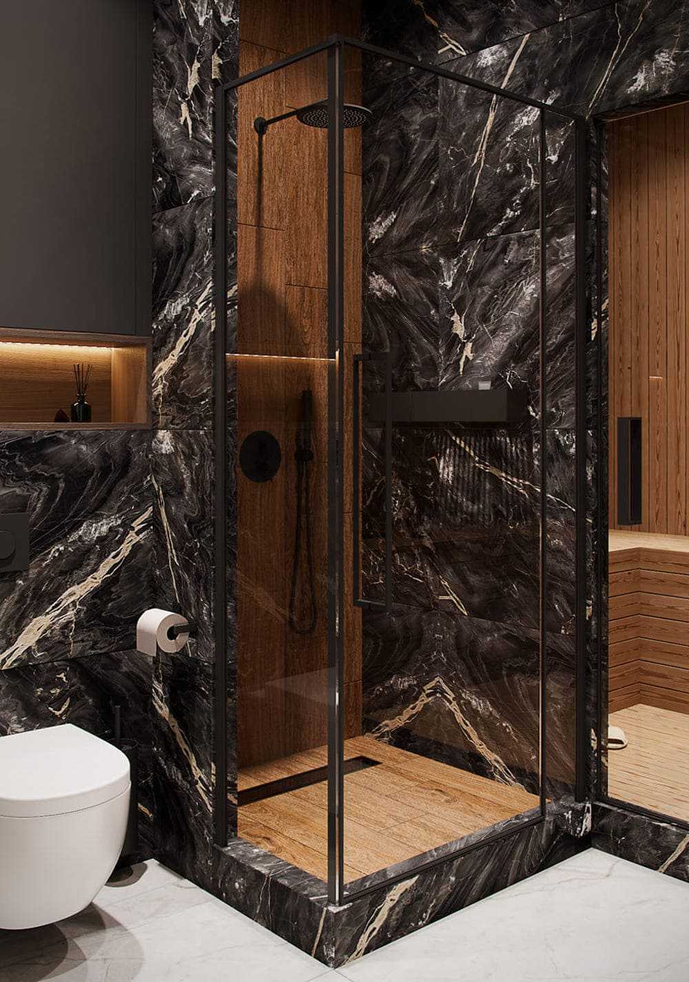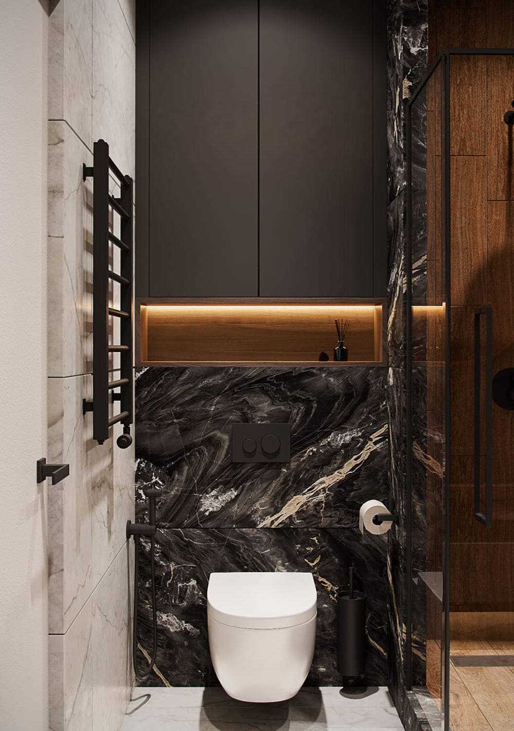 Черный цвет всегда заигрывал с интерьерами ванных комнат – он выглядит чрезвычайно эффектно, но с ним также легко перебрать и создать в интерьере гнетущее ощущение.