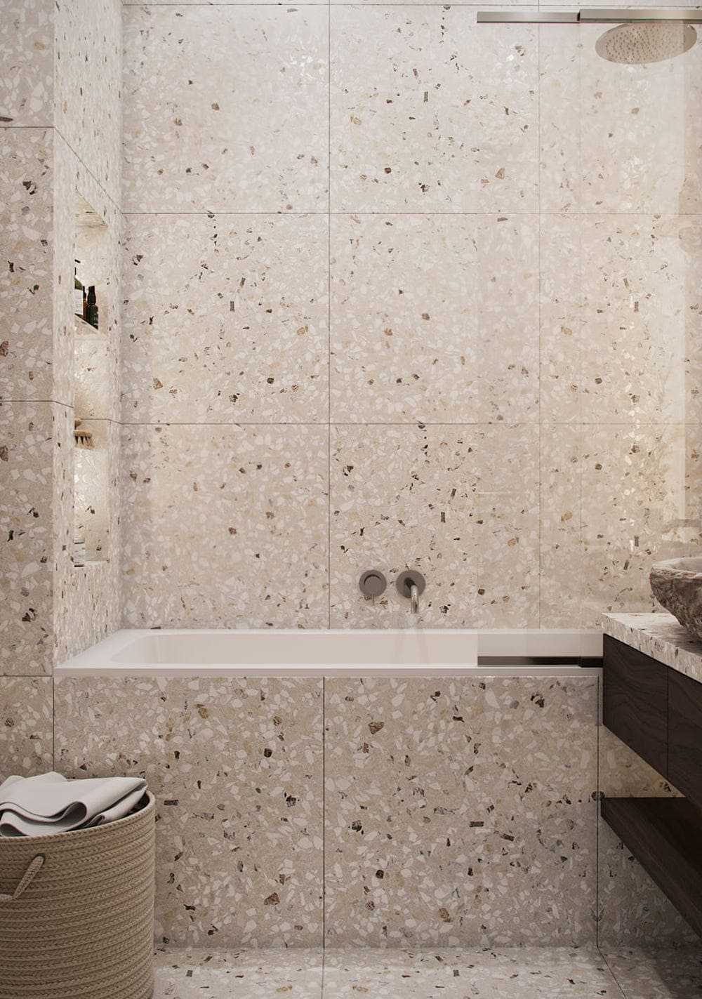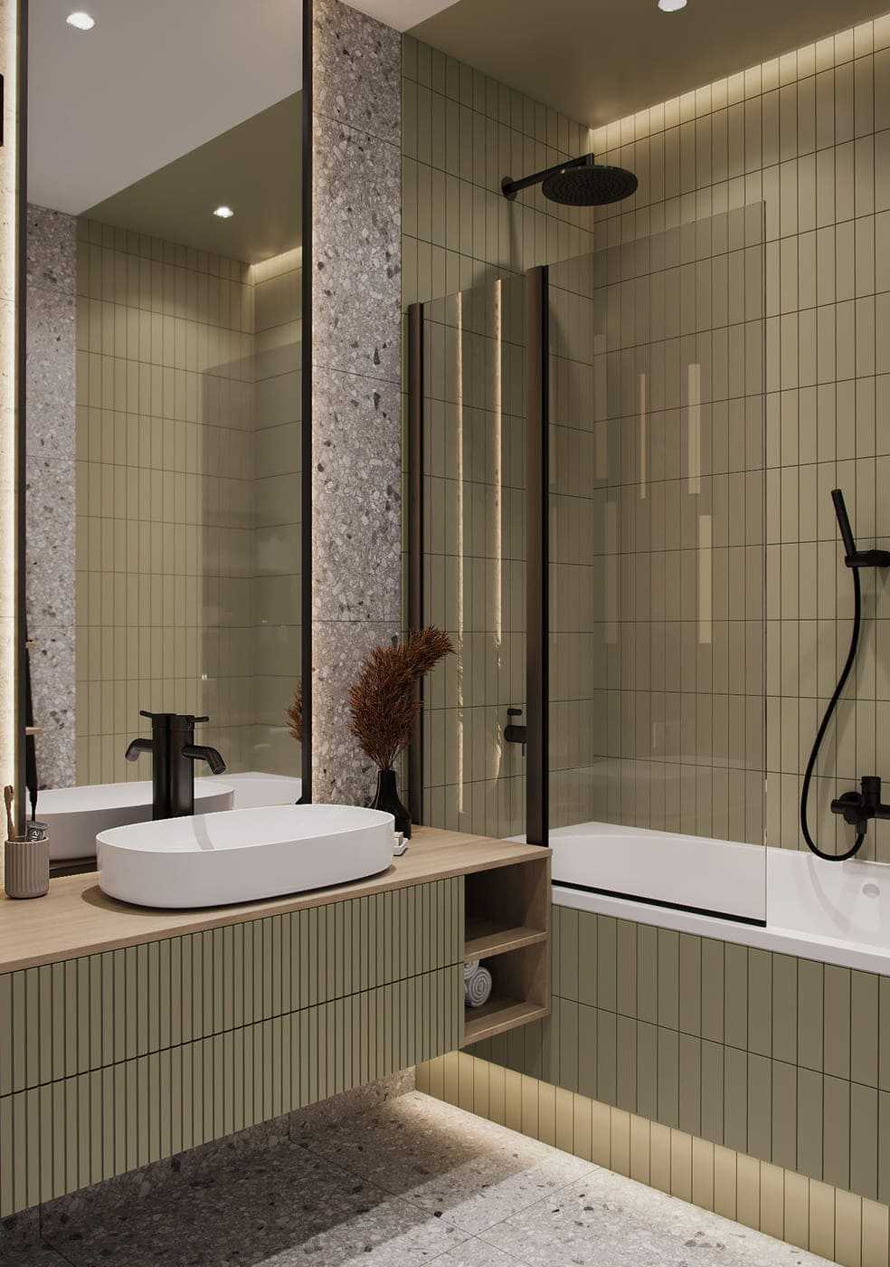 Независимо от выбора цвета, керамическая плитка 2022 может сочетаться со структурированной поверхностью в определенной части помещения. Дизайнеры обычно выбирают для выделения одну зону — например, за ванной. Структурированная стена дополнительно подчеркивает интерьер. Если выбор плитки хорошо продуман и соответствует остальному декору, она будет радовать вас долгие годы.