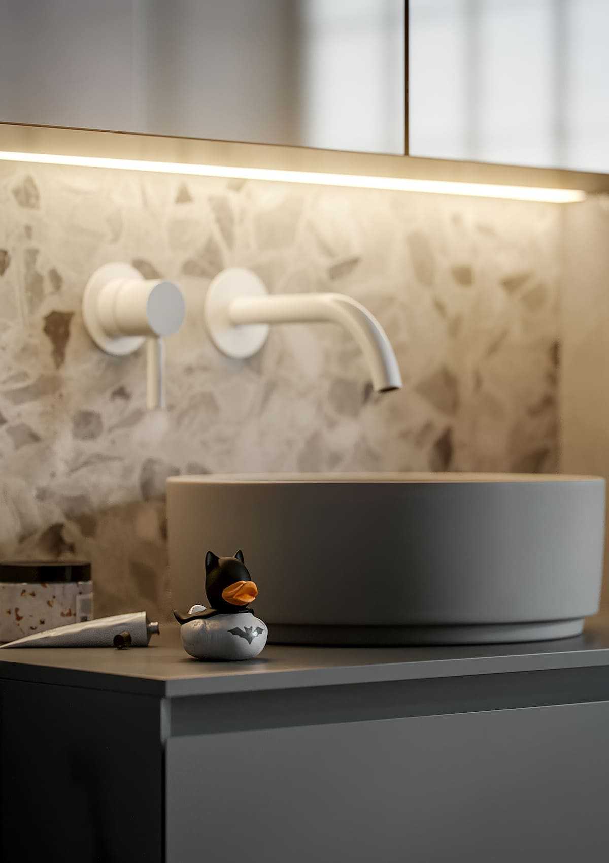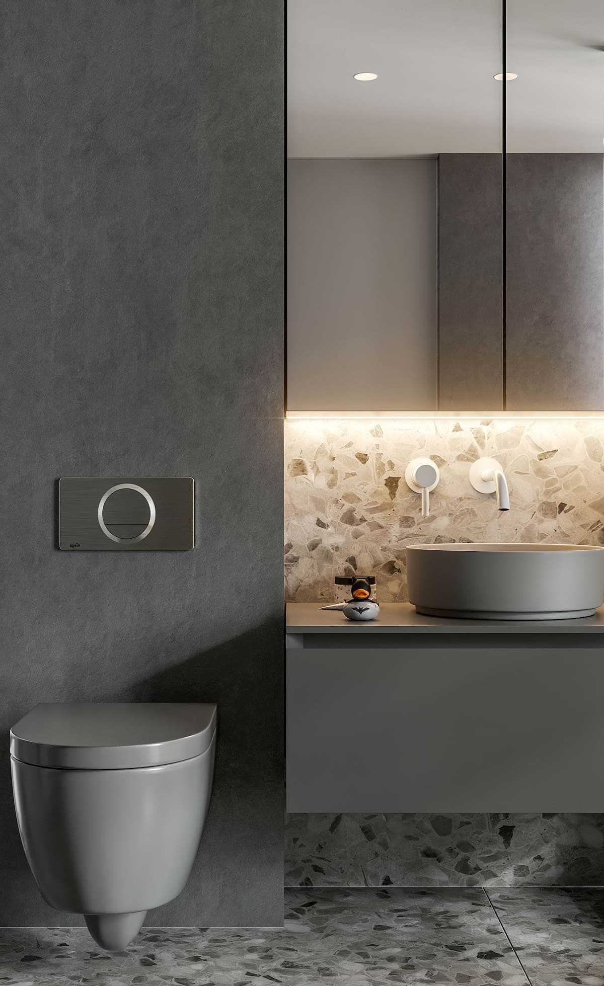 Серый цвет в интерьере ванной комнаты – самое актуальное решение для современных интерьеров. Легко сочетаясь с популярными фактурами камня, бетона, дерева, металла и даже мрамора, серый цвет не только придает любому интерьеру ощущение актуальности и современности, но также составляет эффектную пару с любыми другими оттенками, позволяя выделить или, напротив, сгладить их.
