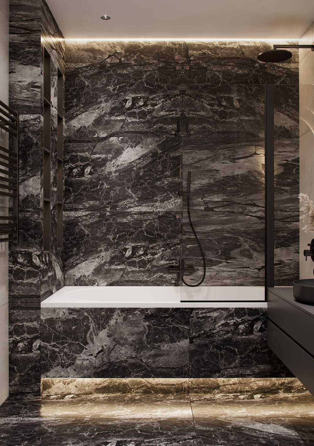Кроме того, на рынке представлена керамическая плитка для ванной 2021 достаточно достоверно имитирующая натуральный камень различных видов.
