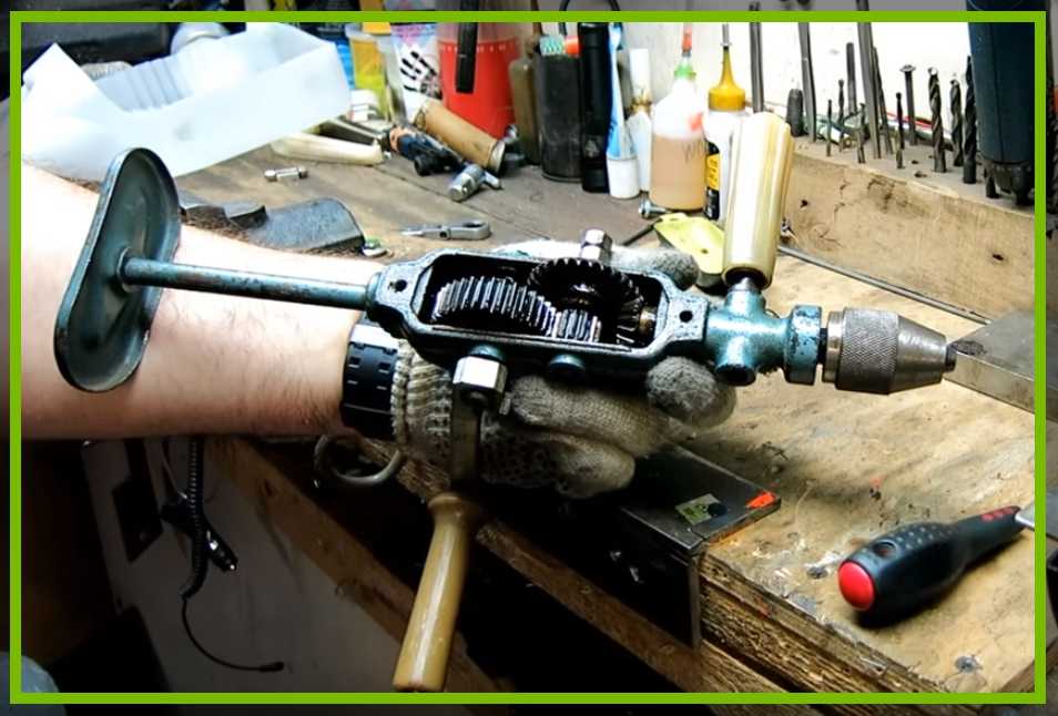 Необходимость увеличения скорости сверления обусловило создание механической дрели. Усиление оборотов сверла в полученной модели достигается за счет оснащения инструмента корпусом с шестеренками.