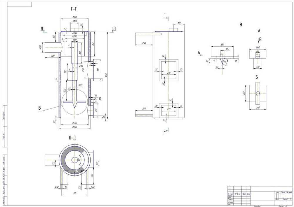Предварительно составляют схему будущего котла со всеми расчетами. За основу берут наиболее удачную в этом плане конструкцию самодельного котла, разработанную инженером Беляевым. В нее вносят корректировки соответственно пожеланием владельца дома. Например, сделать отопление более эффективным можно за счет увеличения объема рубашки теплообменника.