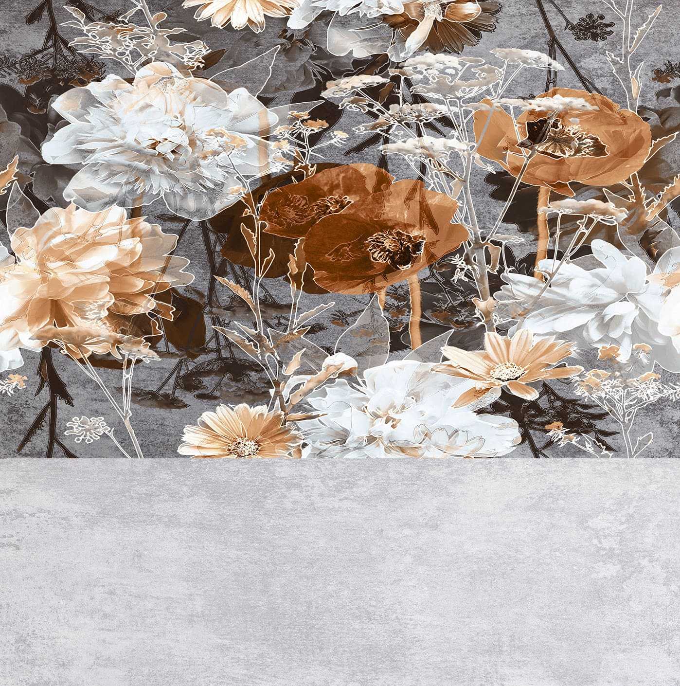 Модными становятся рисунки, наполняющие даже скромную гостиную ощущением роскоши. Это может быть изображение полок с книгами в переплетах с богатой отделкой, стилизация величественного камина. Несколько последних лет невиданным успехом пользуются гипертрофированные сочные цветы, бабочки, экзотические пейзажи на стенах.
