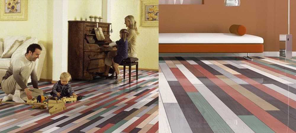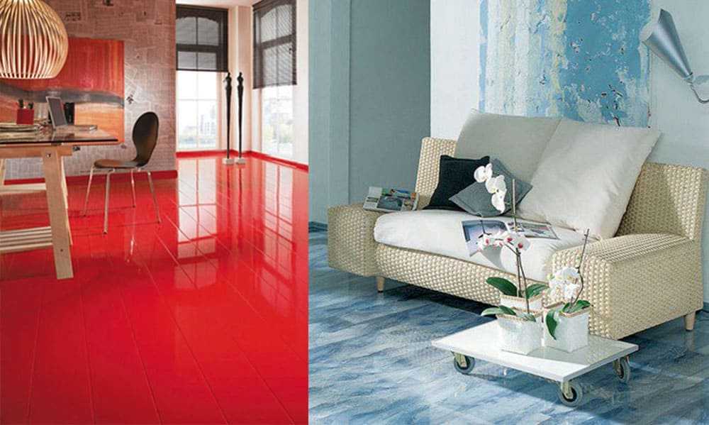 Любые яркие оттенки и совершенный блеск можно сочетать с прекрасной текстурой дерева. Такой пол зрительно расширит пространство и подойдет даже под самые инновационные стили интерьера.