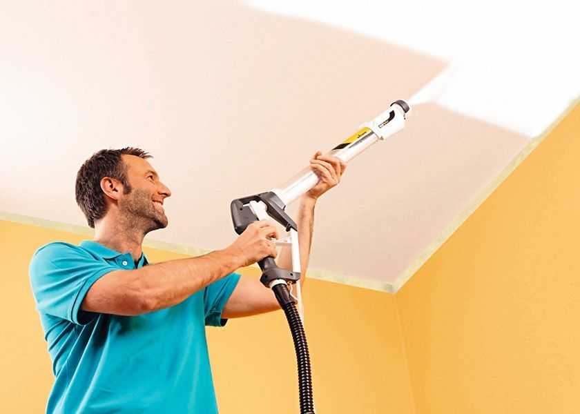 Но покраска потолков пульверизатором имеет свои минусы, о которых тоже стоит рассказать: