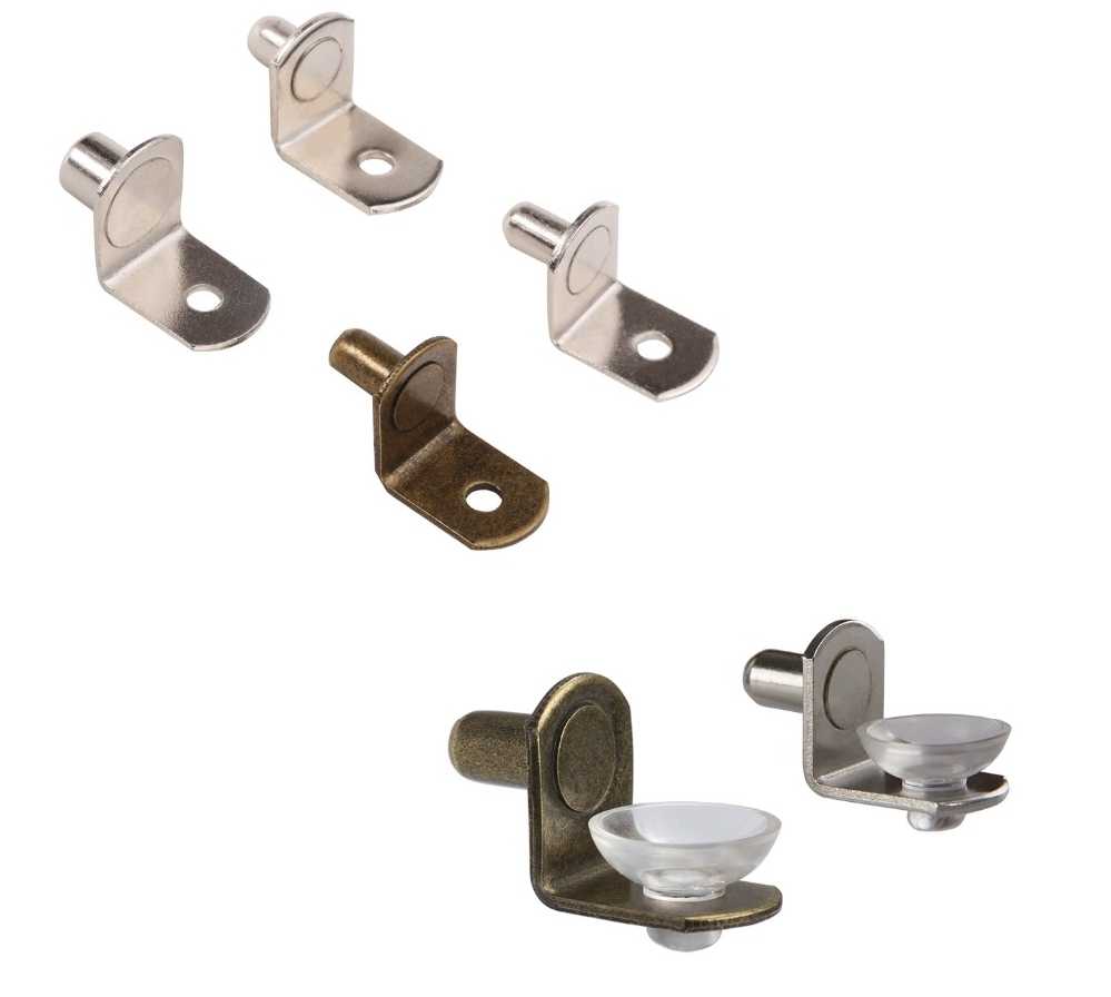 Существует два наиболее распространенных типа опор для стеклянных полок.