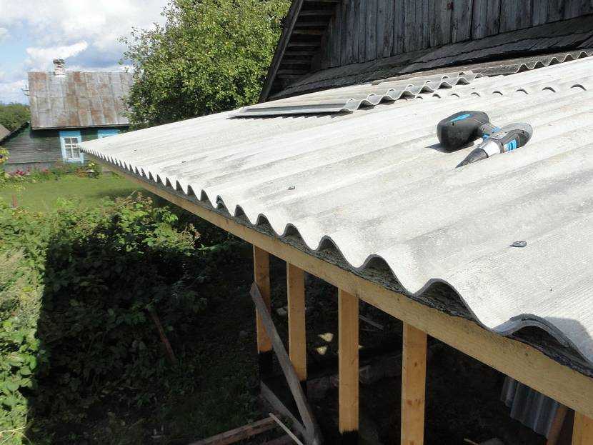 Обязательно нужно положить на крыше металлические уголки, которые будут защищать шифер от воды.