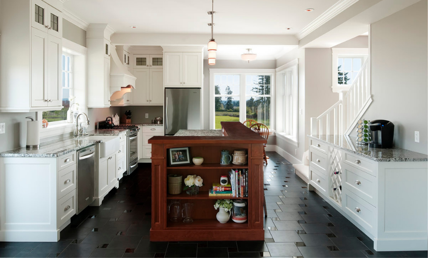 На кухне вся семья проводит достаточно много времени, и это касается не только совместных завтраков или ужинов. Приготовление еды, совместный отдых, чаепития или просто общение делает кухню зоной активного пребывания.